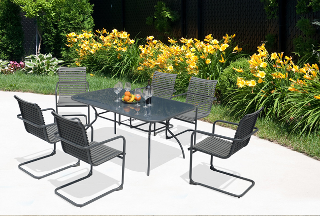 Rnmano 7 Pcs Metal & Plastic Slats Spring Dining Set