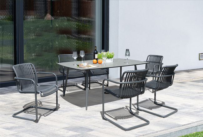 Natalie 7 Pcs Metal & Plastic Slats Dining Set